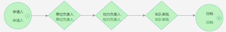 申请人(申请为老师)-单位负责人(学院院长或部门处长)-学校校办负责人-车队审批-归档。