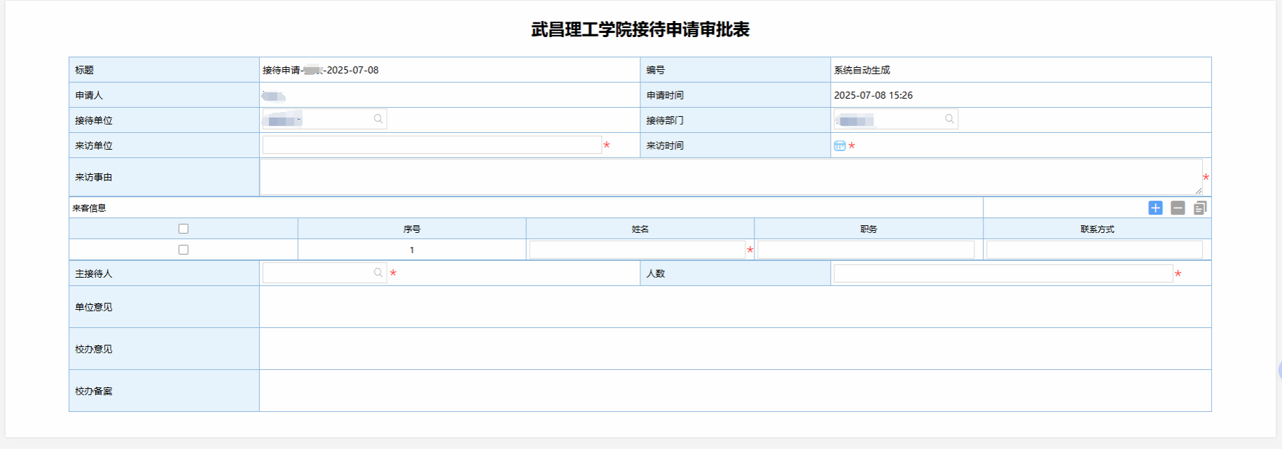 (1)如果办理不是当前所在部门业务,注意修改申请单位和申请部门。