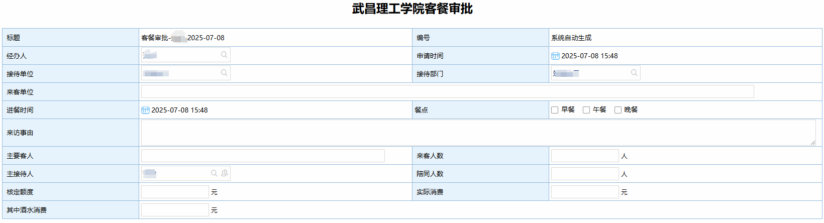 (1)如果办理不是当前所在部门业务,注意修改申请单位和申请部门。