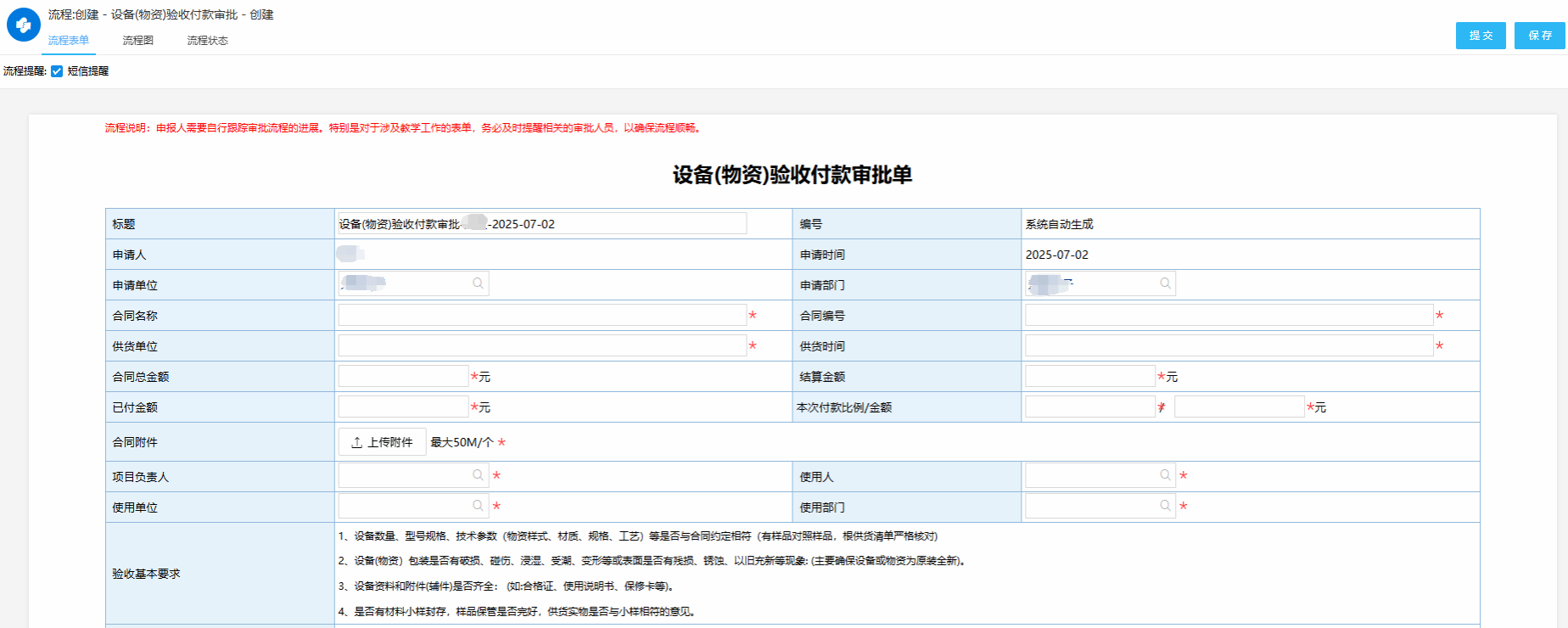 (1)如果办理不是当前所在部门业务,注意修改申请单位和申请部门。