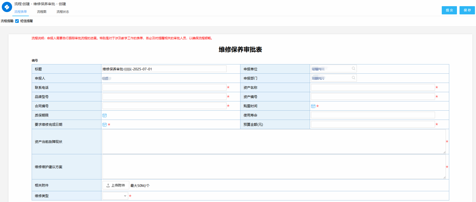 (1)如果办理不是当前所在部门业务,注意修改申请单位和申请部门。